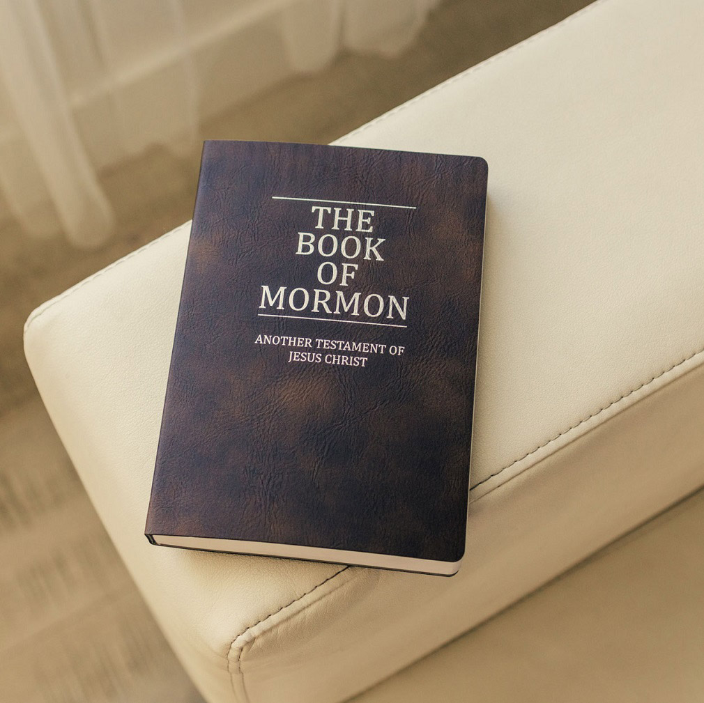 Enjoy beautiful color scriptures at an affordable price with our exclusive line of leatherette covered scriptures. Each combines high-quality, yet economical construction and materials to ensure every member of your family can have a set of scriptures they love. This basic leatherette Book of Mormon features a rustic brown color and silver engraving. Leatherette is a type of simulated leather made for custom engraving. Our classic designs and your personalization won't fade or...