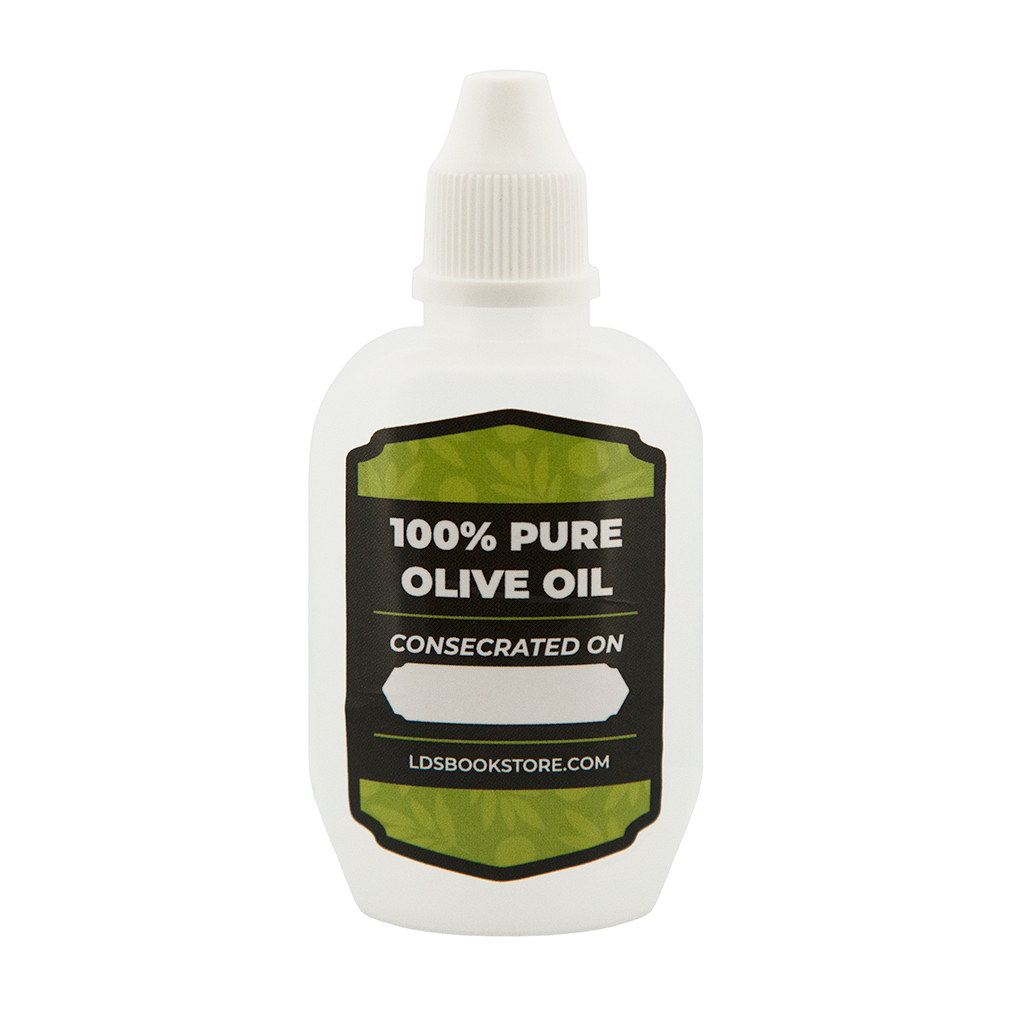 This empty oil bottle was designed told hold consecrated oil for priesthood holders. It can hold approximately 1.25 ounces of olive oil. The sticker on the front features room for you to record when you consecrated the oil.