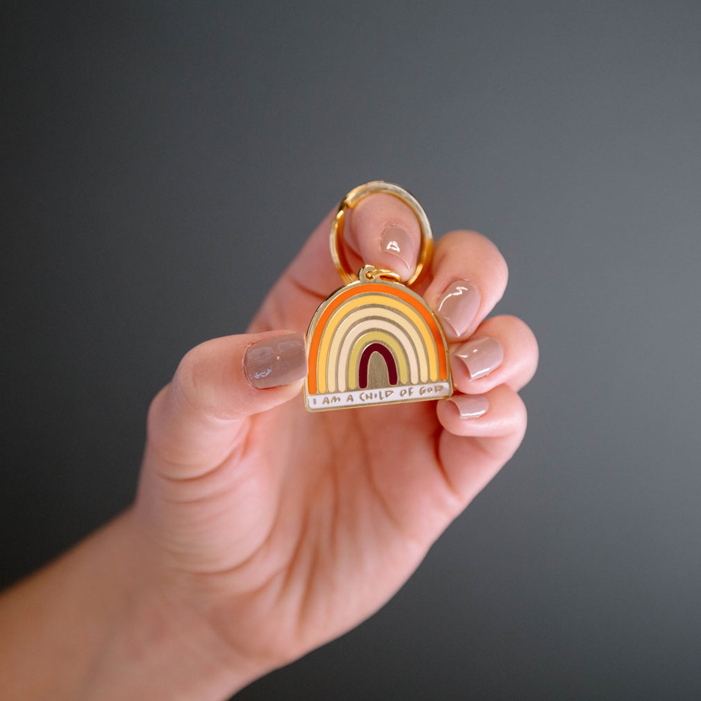 Our Child of God keychain features an exclusive design of a pastel rainbow with the words "I Am a Child of God". The keychain is made with gold enamel and features a matching keyring. This makes for...