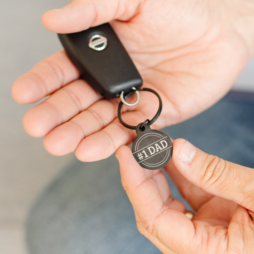 Our Father's Day circle keychain in black features a #1 Dad design. This stainless steel keychain makes for a great gift to celebrate the father figure in your life on his special day. "Only a dad...