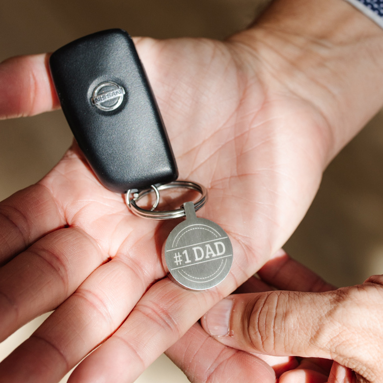Our Father's Day circle keychain in silver features a #1 Dad design. This stainless steel keychain makes for a great gift to celebrate the father figure in your life on his special day. "Only a dad...