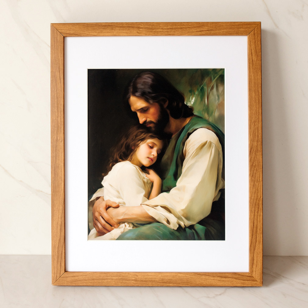 Our framed LDS artwork brings a sense of beauty and spirituality to any home or office. This work features Christ comforting a young child. Our team at LDS Bookstore uses a combination of digital art techniques to make these beautiful exclusive images.