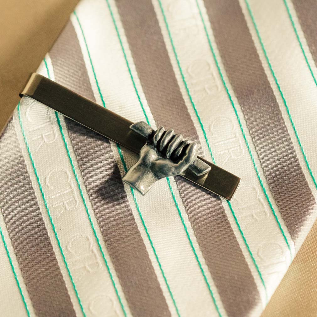 This CTR Tie Clip is made of Pewter and plated with silver.