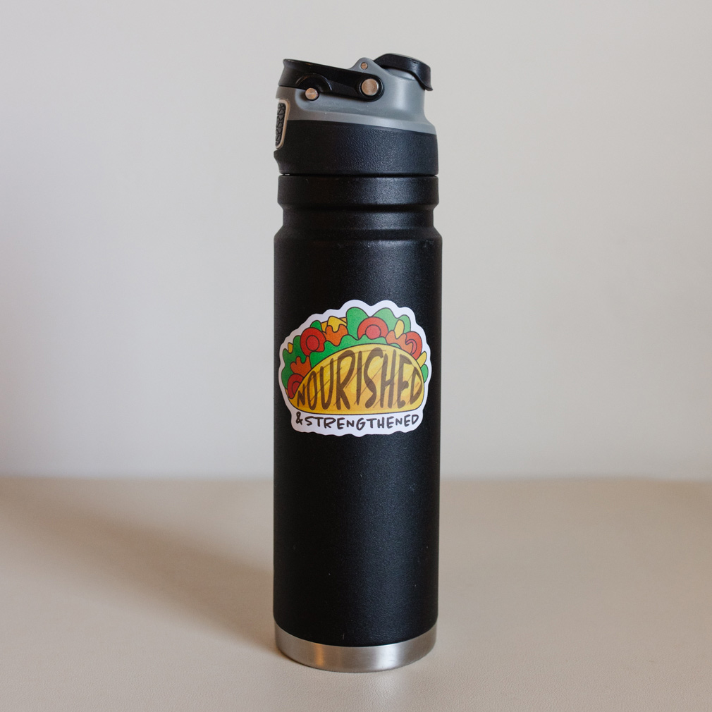 Nourished & Strengthened Taco Vinyl Sticker lds taco sticker, taco sticker, lds water bottle sticker, lds laptop sticker, lds vinyl stickers, nourish sticker, strengthen sticker