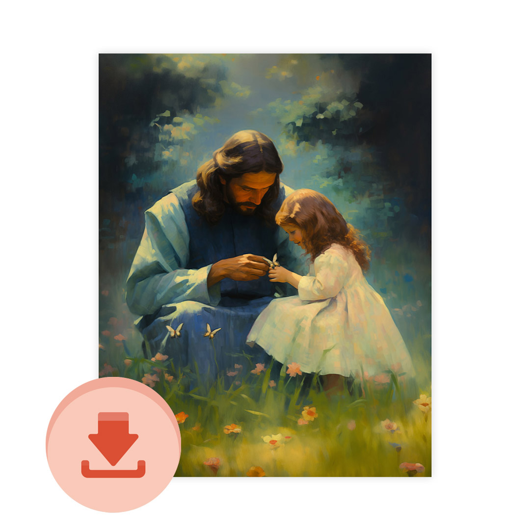 The Color of Butterfly Wings is a beautiful depiction of Christ and a child admiring a butterfly. It is also available as framed wall art.